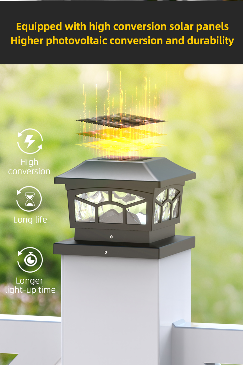 Limyè ki enpèmeyab 8 ki ap dirije Solè Post Cap Light Landsign a gen yon sistèm entèlijan limyè-sansib, deyò fò ki enpèmeyab, ak fasil enstale, apwopriye pou dekorasyon lakou, jaden, elatriye.